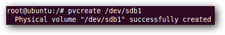 输入 pvcreate /dev/sdb1 在刚创建的分区上新建一个 LVM 物理卷。