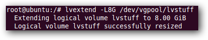 让我们来看一个如何向刚创建的逻辑卷 “lvstuff” 添加新硬盘驱动的例子。
