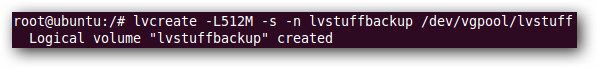 lvcreate -L512M -s -n lvstuffbackup /dev/vgpool/lvstuff