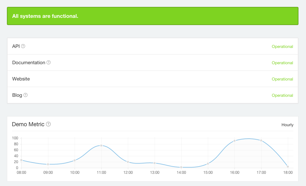 这一切的要求或多或少改进了你、你的团队、和你服务的用户之间沟通渠道。一个实现它的方法是维护一个集中的系统状态页面,报告和记录故障停机详情、进度更新和维护计划等。这样,在故障期间你避免了不必要的打扰,也可以提醒一些相关方,以及加入一些可选的状态更新。