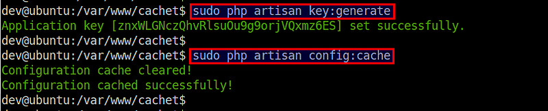 下面,创建一个密钥,它将用来加密进入 Cachet 的数据。