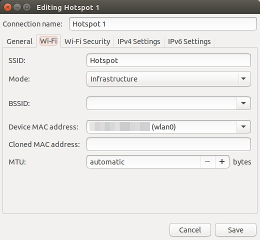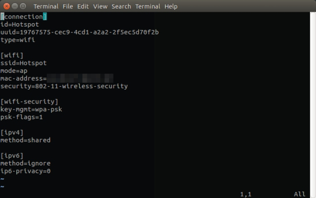 gksu gedit /etc/NetworkManager/system-connections/Hotspot