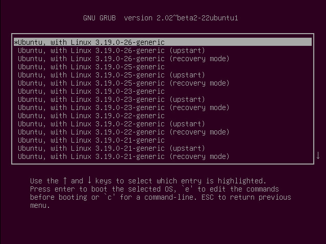 GRUB管理器为每个旧内核都维护了一个GRUB入口,以备你想要使用它们。