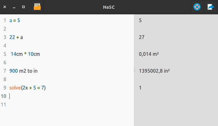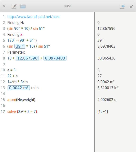NaSC,Not a Soulver Clone 的缩写,是为 elementary 操作系统开发的第三方应用程序。正如名字暗示的那样,NaSC 的灵感来源于 Soulver,后者是像普通人一样进行数学计算的 OS X 应用。