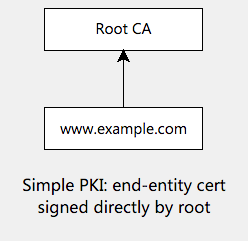 一个 SSL 证书必须被 证书授权中心 ( certificate authority,CA ) 签名才是可信的。在最简单的情况下,网站的证书( 终端证书 ( end-entity certificate ) )是由浏览器所信任的 CA 的( 根证书 ( root certificate ) )直接签名的。