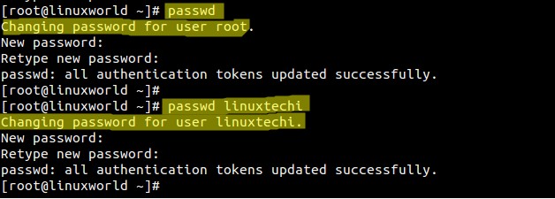 [root@linuxworld ~]# passwd linuxtechi