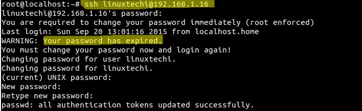[root@linuxworld ~]# passwd -e linuxtechi
