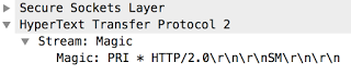 而在同年6月份斯诺登事件沸沸扬扬之后,7/8发布的 draft-ietf-httpbis-http2-04 中就变成了“PRI * HTTP/2.0\r\n\r\nSM\r\n\r\n”。