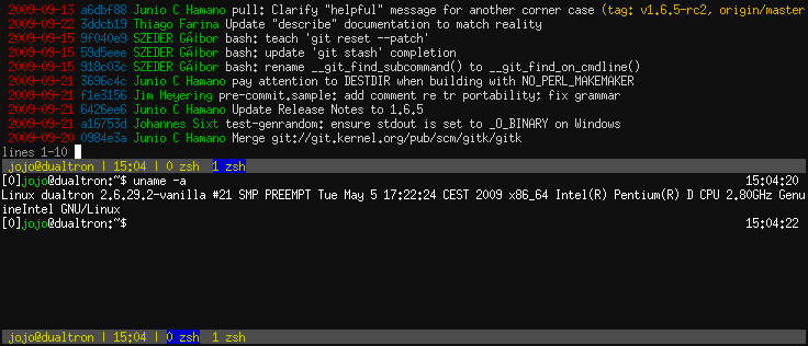 很多人喜欢在终端窗口的下方显示一个状态条,尤其是在使用 screen 将窗口分割成几个子窗口时。