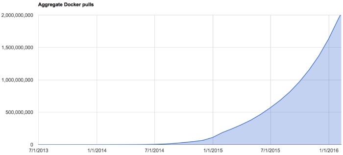 在2016年1月,Docker 用户每分钟拉取镜像近7000次。这是一年前的4倍!仅在一月份,整个平台的拉取数量就相当于过去三年的总拉取量的15%,这表明整个 Docker 生态系统是非常的健康活跃。