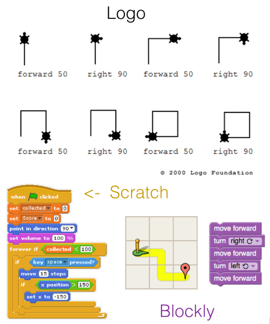 在过去的五十年,设计师们不断改进 Seymour Papert 创造的 Logo 编程语言(LCTT 译注:应该有同学见过那个“小乌龟”),出现了一大批界面稍有不同而核心思想相同的编程语言。当前的教学标准是基于 模块 ( blocks ) 的编程方式,这要归功于 MIT 的 Scratch 编程语言的流行。在 CSTA 的 K-12 计算机科学教学标准中,对于 K-5 年级,要求达到“使用基于模块的可视编程语言来构建和测试解决方案”的编程能力。