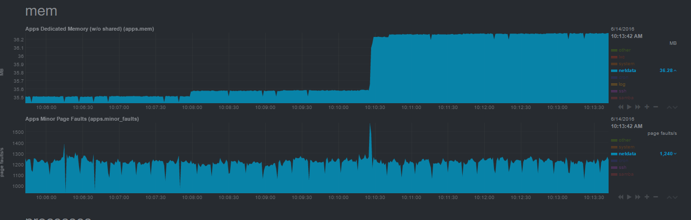 Netdata 并不会占用多少系统资源,它占用的内存不会超过 40MB。因为这个软件是作者用 C 语言写的。
