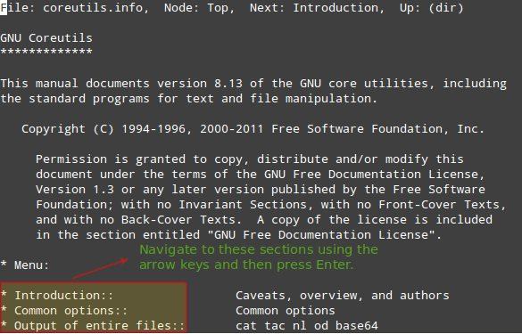 你可以把它看做帮助手册的“开挂版”。它不仅仅提供工具的帮助信息,而且还是超级链接的形式(没错,在命令行中的超级链接),你可以通过箭头按钮从一个章节导航到另外章节,并按下回车按钮来确认。