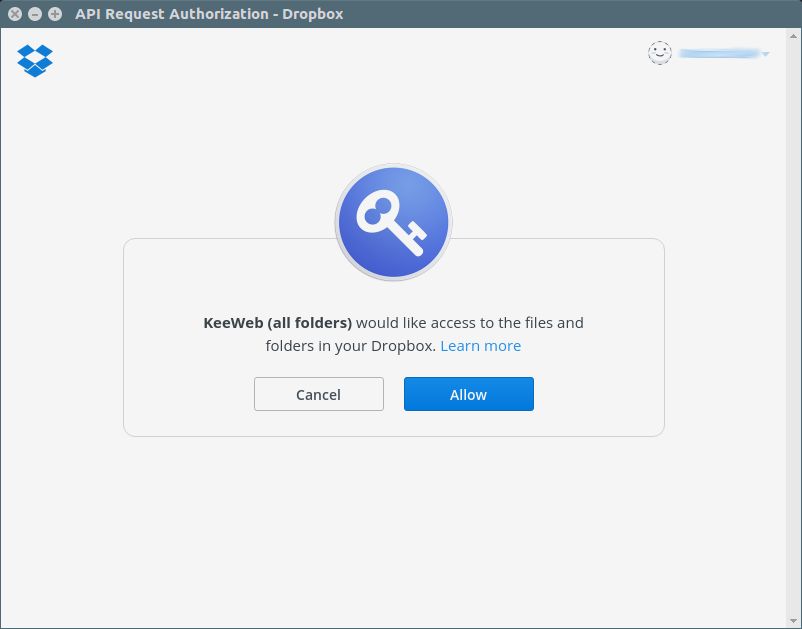现在,Keeweb 会提示你登录到你的云盘。登录成功后,给 Keeweb 授权使用你的账户。