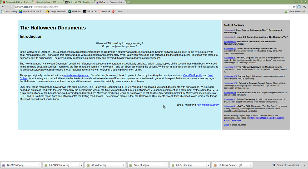 微软开始敌视 Linux。Eric S. Raymond 是一位早期的 Linux 及开源领袖,他披露了这份万圣节备忘录),其中展示了微软视 Linux 为重大威胁,开始制定它的反开源战略和反对 Linux 的活动。然而还不到十年,微软就改变了初衷。