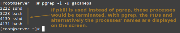 在运行 pkill 之前,先用 pgrep 测试结果、或者使用 -l 选项列出进程名称是一个很好的办法。它需要和 pkill 相同的参数、但是只会返回进程的 PID(而不会有其它操作),而 pkill 会杀死进程。