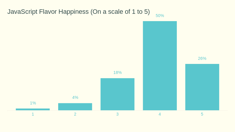 这个问题的答案和上一个问题的满意度想匹配:平均分达到 3.96 分(1 - 5 分),大家在使用 JavaScript 时候确实是快乐的。