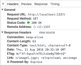 我们想让现今使用 Node.js 构建的网站能够更加轻松的获得性能提升。为此,我们开发了 netjet 中间件,它可以解析应用生成的 HTML 并自动添加 Link 头部。当在一个示例的 Express 应用中使用这个中间件时,我们可以看到应用程序的输出多了如下 HTTP 头: