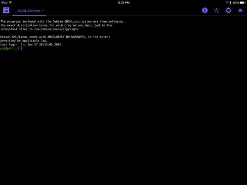 iPad 用 Prompt2 通过 SSH 连接树莓派