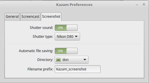 设置屏幕截图同样很简单。你可以选择 Nikon D80 或 Canon 7D 的快门音效,也可以干脆关掉他们。截图文件是自动存放的。除非你关闭这一功能。