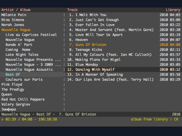 当谈到在 shell 中播放音乐(比如 mp3,ogg 等),有一个软件绝对是卫冕之王:cmus。它支持所有你想得到的文件格式。它的使用超级简单,运行速度超级快,并且只使用系统少量的资源。如此清洁,如此流畅。这才是一个好的音乐播放器的样子。