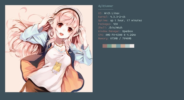 你可以用 packer 或 Yaourt 从 AUR 安装 neofetch 或 neofetch-git。