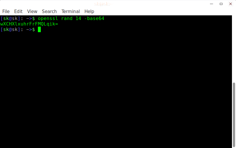 要使用 OpenSSL 生成一个随机密码,打开终端并运行下面的命令: