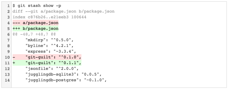 到了 Git v2.11,你不再需要使用完整的 stash@{n} 语句。相反,你可以通过一个简单的整数指出该搁置在 stash reflog 中的位置来引用它们。