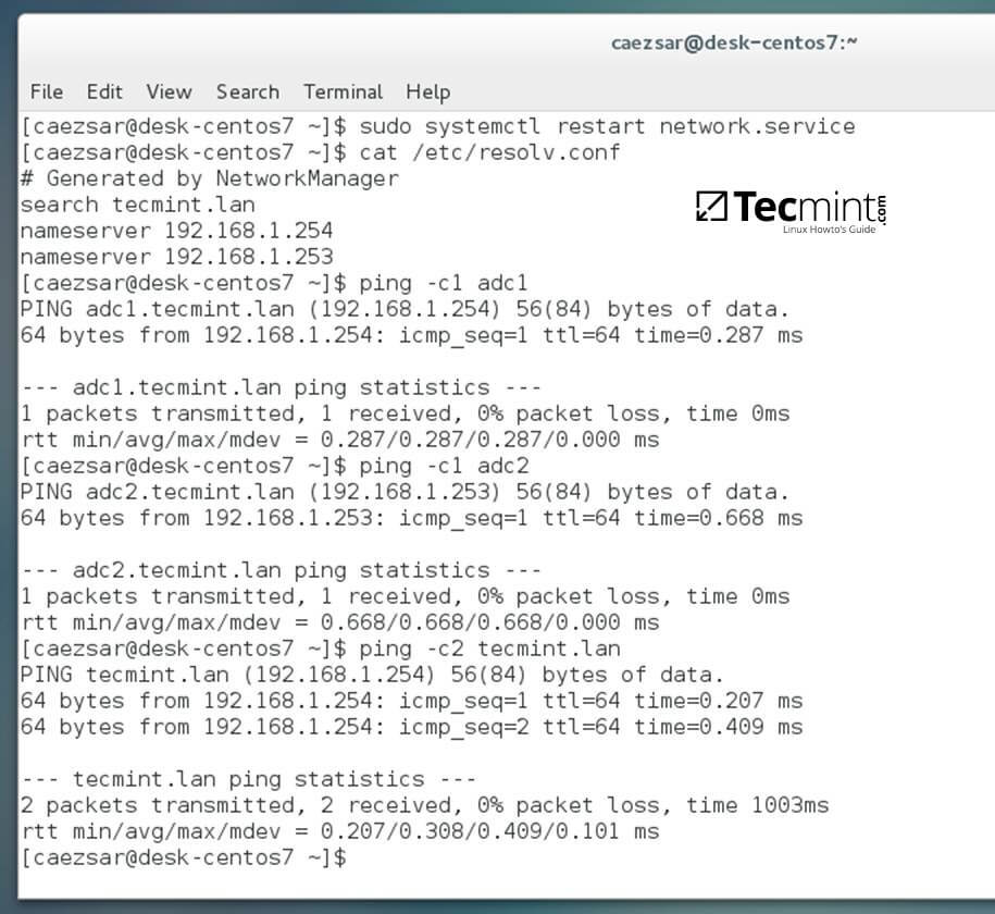 $ ping tecmint.lan