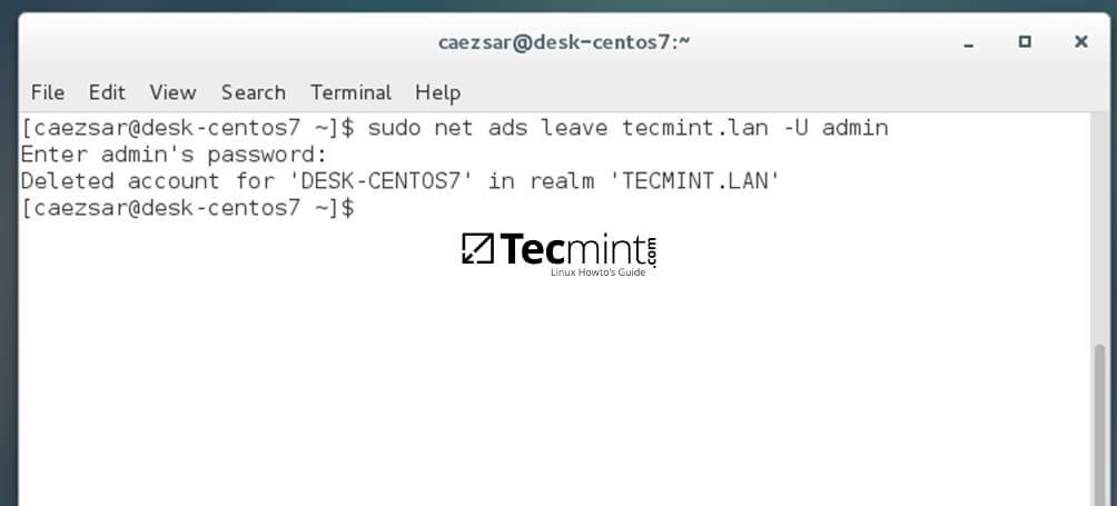 $ sudo net ads leave your_domain -U domain_admin_username