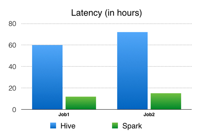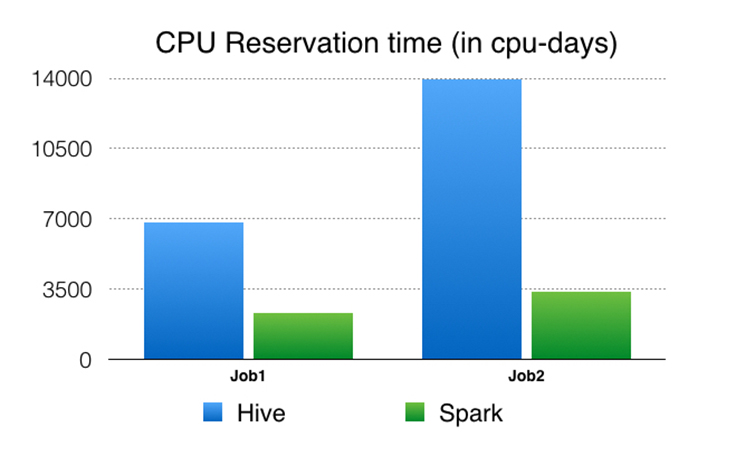 我们使用以下性能指标来比较 Spark 流水线与 Hive 流水线。请注意,这些数字并不是在查询或作业级别的直接比较 Spark 与 Hive ,而是比较使用灵活的计算引擎(例如 Spark)构建优化的流水线,而不是比较仅在查询/作业级别(如 Hive)操作的计算引擎。