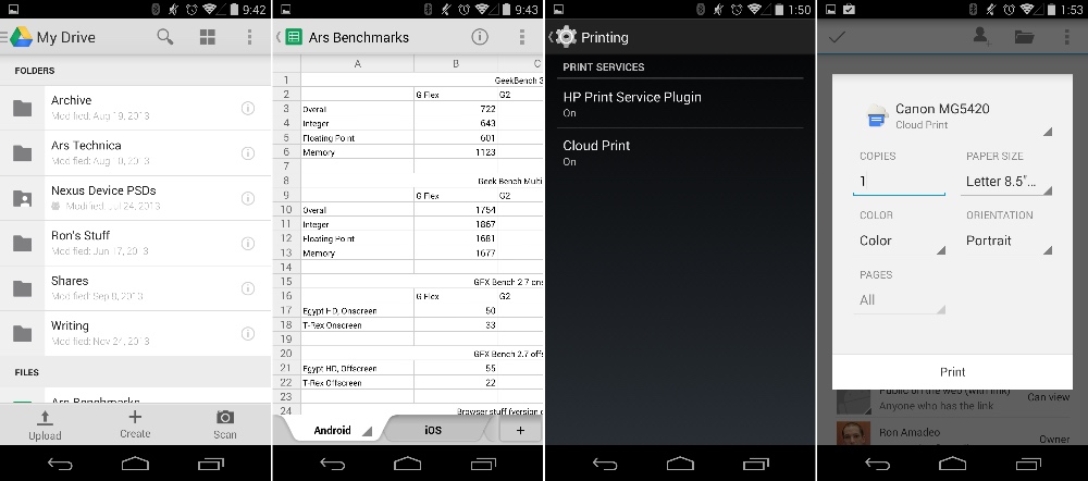 Office 相关:新的内置应用 Google Drive,以及打印支持。 [Ron Amadeo 供图]
