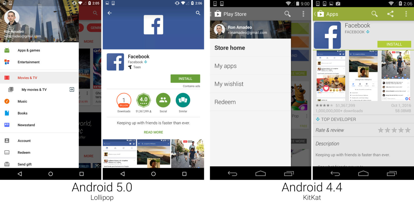 Play 商店遵从了和其它棒棒糖应用相似的轨迹。它在视觉上焕然疑一新,大胆的色彩,新排版,还有一个全新的布局。通常这里不会有什么新增功能,就只是给一切换件新马甲。