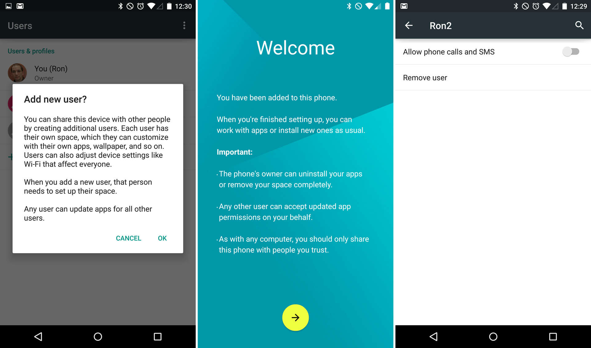 多用户支持已经出现在安卓平板中有一段时间了,但棒棒糖终于将它带到了安卓手机上。设置界面添加了一个新的“用户”页面,让你添加额外的账户或设置一个“访客”账户。访客账户是临时的——它们可以一次点击轻松删除。它不会像正常账户那样尝试下载关联到你账户的每个应用,因为它注定要在不久后被删除。