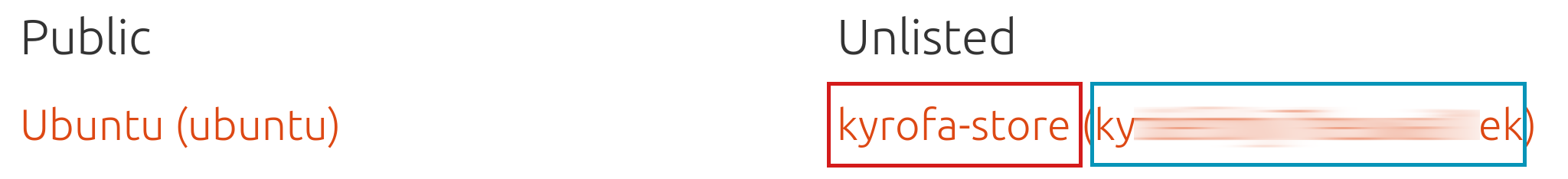 在那里你可以看到多个有权使用的商店。最少的情况下也会有两个:标准的 Ubuntu 商店以及你的新的品牌商店。选择品牌商店(红框),进去后记录下你的商店 ID(蓝框):等下你将会用到它。