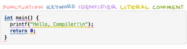 下面是一个打印 “Hello, Compiler!” 到标准输出的简单 C 程序。C 语法是人类可读的,但是计算机却不能理解,不知道该程序要干什么。我将通过三个编译阶段使该程序变成机器可执行的程序。
