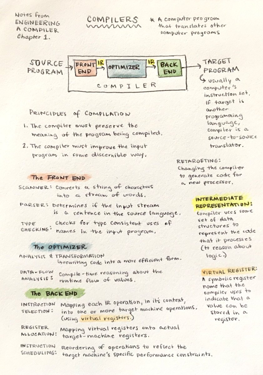 简单说来,一个 编译器 compiler 不过是一个可以翻译其他程序的程序。传统的编译器可以把源代码翻译成你的计算机能够理解的可执行机器代码。(一些编译器将源代码翻译成别的程序语言,这样的编译器称为源到源翻译器或 转化器 transpilers 。)LLVM 是一个广泛使用的编译器项目,包含许多模块化的编译工具。