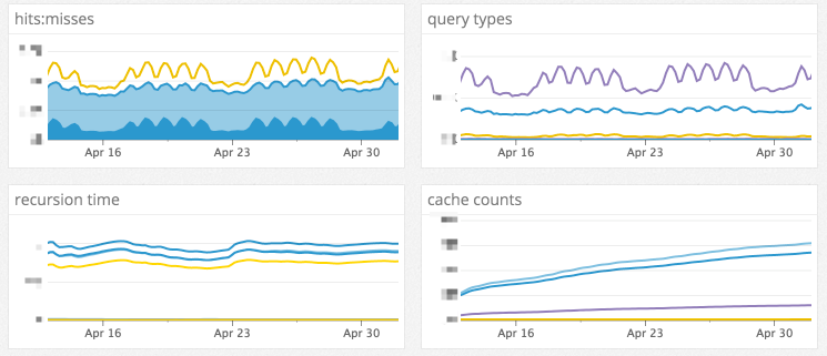 迁移到更现代的 DNS 基础设施的巨大好处是可观察性。我们的旧 DNS 系统几乎没有指标,只有有限的日志。决定使用哪些 DNS 服务器的一个重要因素是它们所产生的指标的广度和深度。我们最终用 Unbound 作为缓存主机,NSD 作为边缘主机,PowerDNS 作为权威主机,所有这些都已在比 GitHub 大得多的 DNS 基础架构中得到了证实。