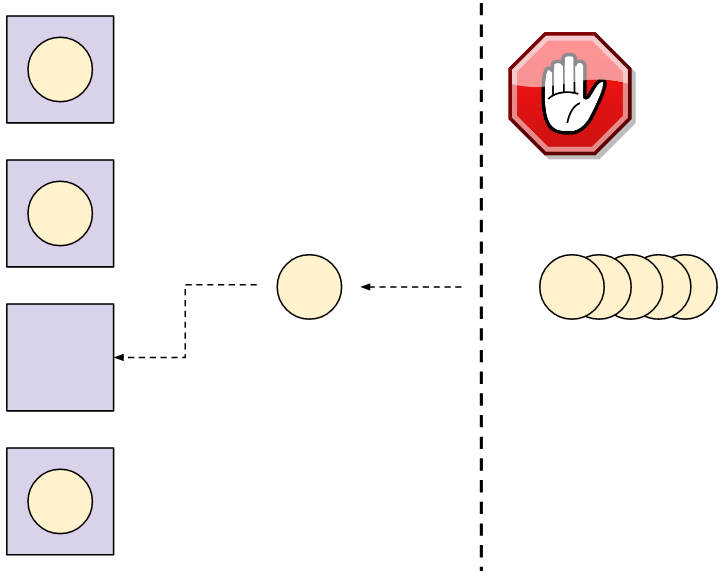 当服务器要与每个客户端通信,CPU 进行大量计算时,就会出现更严重的问题。这种情况下,容易想到的方法是减少服务器的响应能力 —— 只有其中一些客户端能得到服务器的响应。