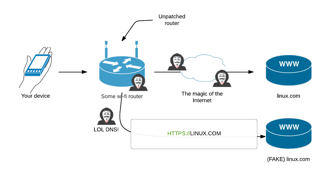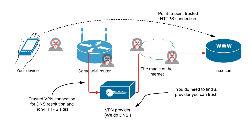 因此,如果你不能信任固件太旧的 Wi-Fi 和/或无线路由器,我们能做些什么来确保发生在你的设备与常说的互联网之间的“最后一公里”通讯的完整性呢?