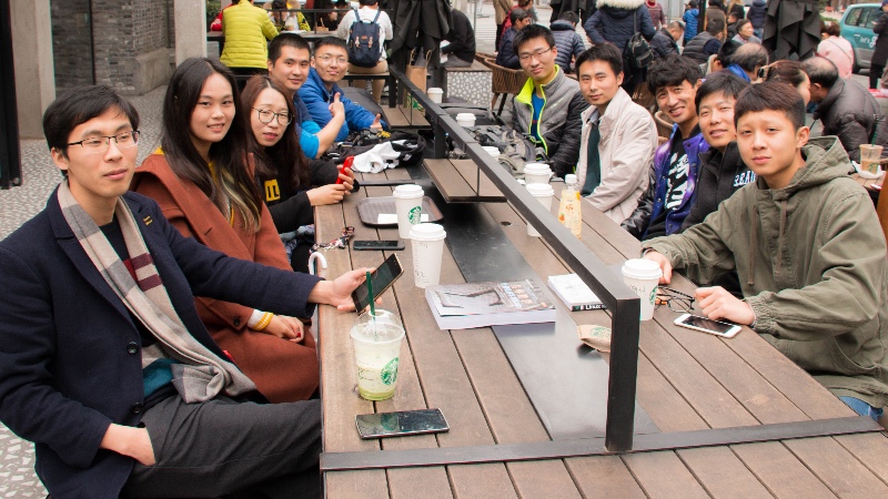本次活动上海分站我们选在了中国共产党发源地——上海新天地附近的一家咖啡馆,为了能够占够位置,一叶、瑾萱、ONLY 暴露了他们脸皮的厚度,这三位小伙伴提前一小时来到咖啡馆,经过激烈研究最终采用了瑾萱妹子在大学图书馆占位策略,他们无视了无数人的横眉冷对并占位成功。