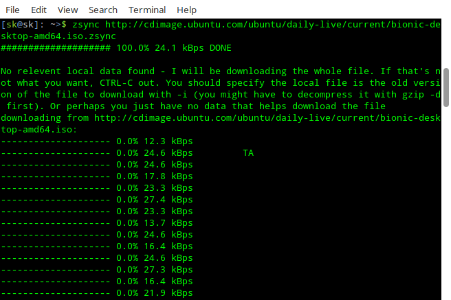 $ zsync http://cdimage.ubuntu.com/ubuntu/daily-live/current/bionic-desktop-amd64.iso.zsync