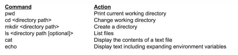 下表显示了用于目录导航和管理简单的文本文件的一些命令摘要。