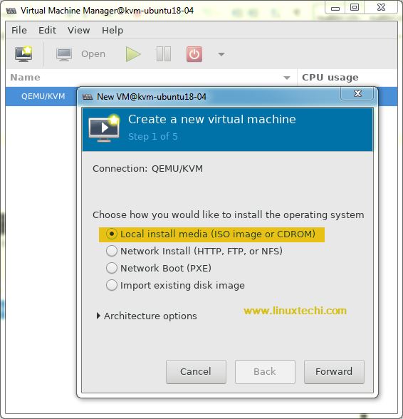 linuxtechi@kvm-ubuntu18-04:~$ sudo virt-manager