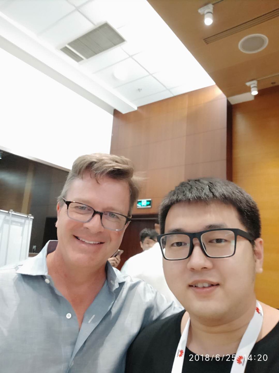在最后的合影时候,我利用这最后的机会疯狂的将各位大佬当成背景自拍,这一个举动被站在 Linus 旁边的 Jim 看到了,他走过来拿着我的手机说,“天哪,我看你一直在自拍,自拍了不下十次,我知道你一定想和Linus合个影对吧?”于是乎我得到了下面这张由 Jim 亲手拍摄的:
