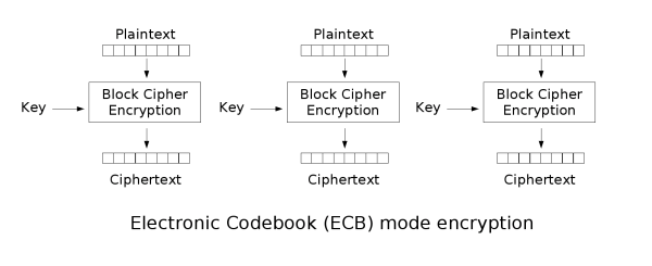 这里我们留意到一个问题:如果相同的分组在明文中出现多次(例如互联网流量中的 GET / HTTP/1.1 词组),由于我们使用相同的密钥加密分组,我们会得到相同的加密结果。我们的安全通信中会出现一种 模式规律 pattern ,容易受到攻击。