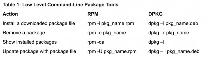 有时你正在使用的 Linux 没有图形环境,因此熟悉从命令行安装软件包是件好事。表 1 和表 2 列出了基于 RPM 和 DPKG 系统的一下常见操作及其相关命令。