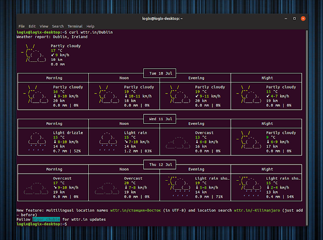 curl wttr.in/Dublin