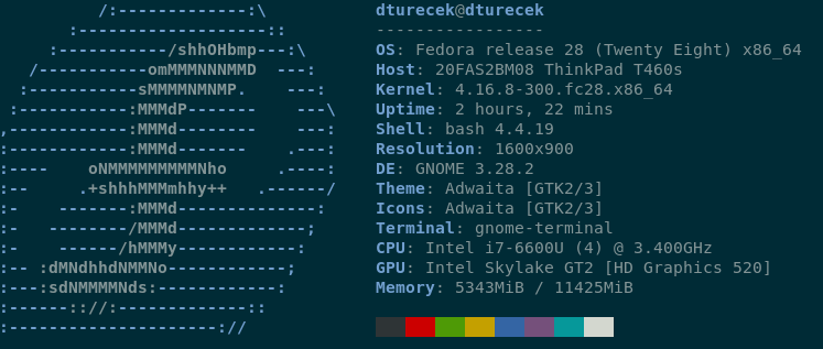 仓库目前为 Fedora 28 提供 Neofetch。要安装 Neofetch,请使用以下命令: