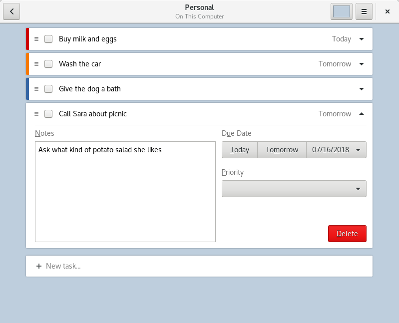 使用 ToDo,你可以为所有任务确定优先级并安排截止日期。你还可以根据需要构建任意数量的任务列表。ToDo 有大量提供了有用功能的扩展,以提高你的工作效率。这些包括 GNOME Shell 通知,以及带有 todo.txt 的列表管理。如果你有 Todoist 或者 Google 帐户,ToDo 甚至可以与它们交互。它可以同步任务,因此你可以跨设备共享。